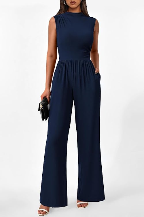 Amazon -This wide-leg jumpsuit will save the day when you need a chic, polished look — zero effort required. Fitted through the top with unique ruching and a mock neck, the pleated wide-leg bottoms balance the silhouette beautifully. The sleeveless cut and lightweight feel make it a year-round winner.