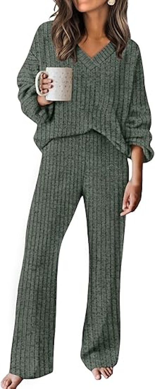 Upgrade your sweatsuit with this lounge set. Both the wide-leg pants and long-sleeve V-neck top are crafted from soft ribbed fabric that’s every bit as comfy as your favorite cozy clothes, but the silhouette is elevated enough to be worn out for errands — and you can even mix and match with the rest of your wardrobe.