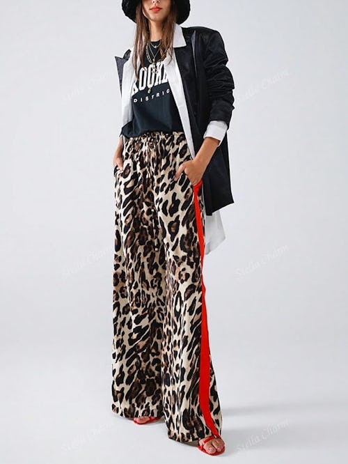 Floaty Leopard-Print Pants With A Statement-Making Red Stripe