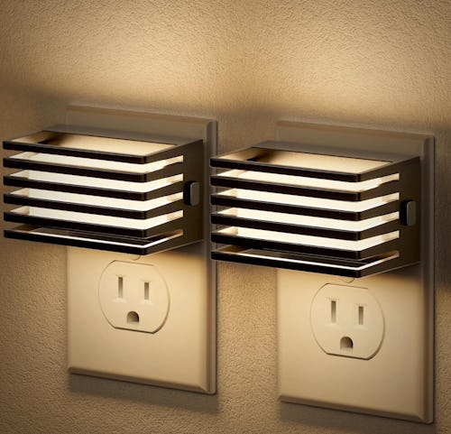 This pair of night-lights comes complete with a slatted frame that give them a fun, vintage look that’s much more stylish than many conventional night-lights. And for a practical touch, these lights have a built-in sensor that powers on at night and off in the morning to help you save on electricity, too. They also offer adjustable brightness.