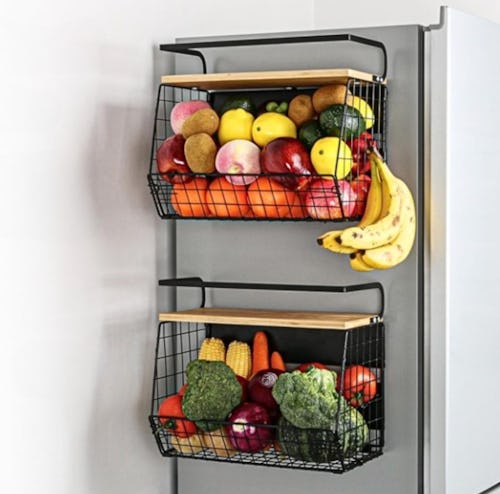 Create new opportunities for attractive storage around your home with this sleek magnetic shelf that sticks to fridges and more. It features an open, wire compartment perfect for storing produce as well as a wooden tray on top that can double as a spice rack or a home for oils and other condiment bottles. Each shelf can support an impressive 33 pounds, too.