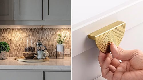 Add a bit of glamour without going over the top by installing this pair of gold 4-inch cabinet pulls. They have a modern feel and soft touch so that they’re not only nice to look at but comfortable to use as well. Even in humid environments, their brass and aluminum construction will continue to shine. They come with all necessary hardware for installation. Other sizes and shapes (like polygons) are available in the listing.