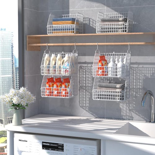 Stack, move, and fill these storage baskets as you please. Their metal wire walls and open-front design make it easy to do all three. They’ll also cut down the amount of time it takes you to find the sweater that you’re looking for since you can see right through each side.