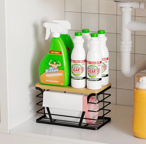 This under-sink organizer is a perfect way to turn your cluttered cabinets into an orderly paradise that looks much nicer. Featuring two tiers of storage, this organizer boasts a wire basket on the top for smaller accessories like sponges and scrubbers as well as a larger shelf on the bottom that pulls out like a drawer for easy access to product bottles.