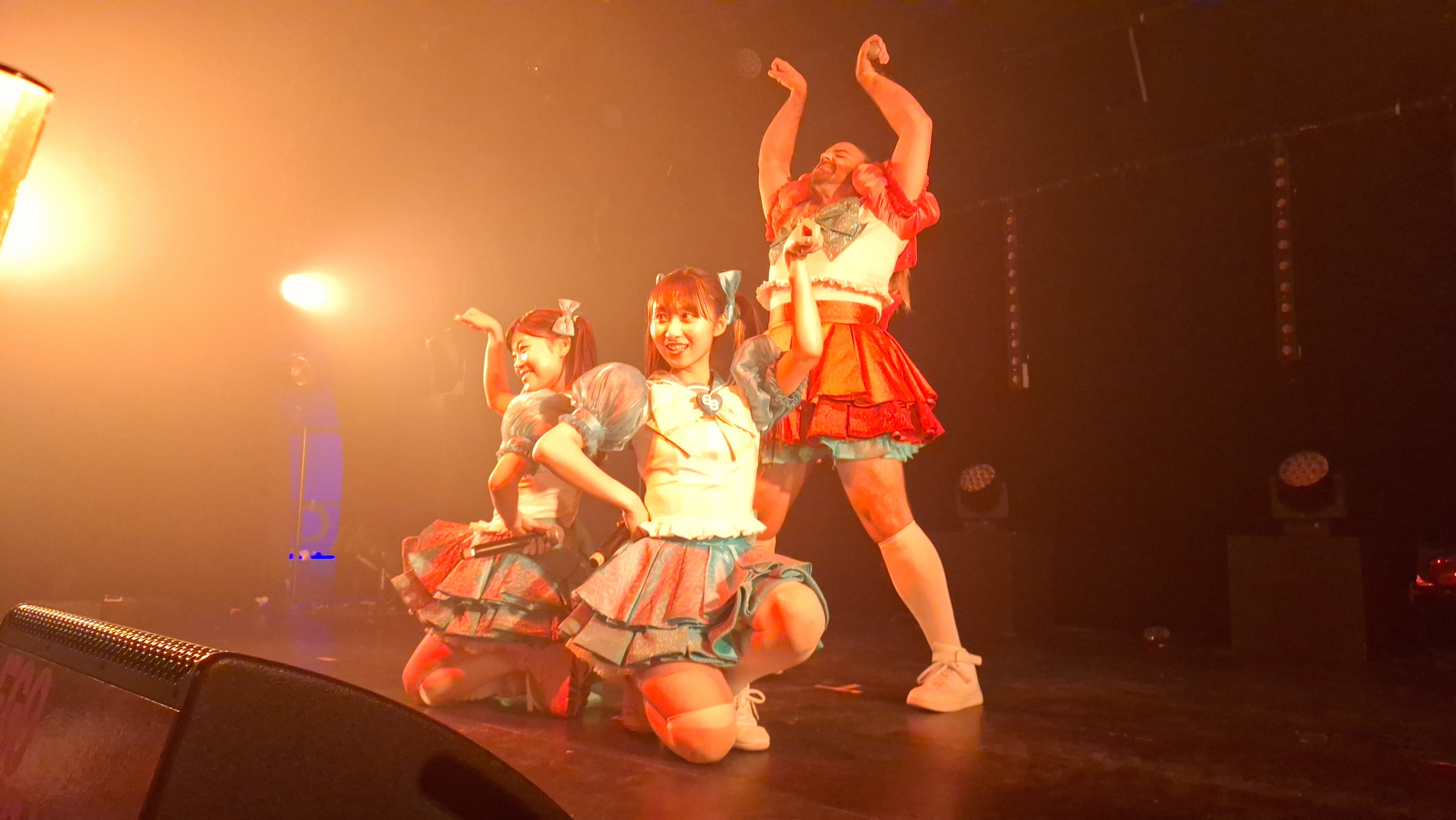 Alors que nous passions un super moment, celui-ci a été brutalement interrompu par l’irruption sur scène d’un catcheur français venu fracasser Ladybeard par derrière, mécontent de voir ce catcheur habillé en Idol venir se produire en France. Alors que SUZU et MIZUKI ont eu le temps de s’enfuir de scène sans être blessées, n’ écoutant que son courage, Ladybeard s’est relevé et a vaillamment combattu l’intrus non seulement sur scène mais aussi au beau milieu du public et même dans le mini gradin du fond. Une vrai démonstration de catch qui aurait pu mal finir si SUZU et MIZUKI n’étaient pas intervenue. Grace à leur aide, Ladybeard a pu finalement terrasser son adversaire après une bonne dizaine de minutes de combat.