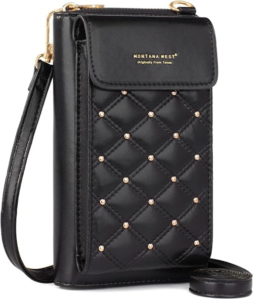 If you’re traveling light, reach for this crossbody bag that’s crafted from supple vegan leather. The compact design can fit most smartphones, and features two inner compartments, a zipper compartment, and four slots for cards — so you’ll be able to fit essentials like lip balm and keys.