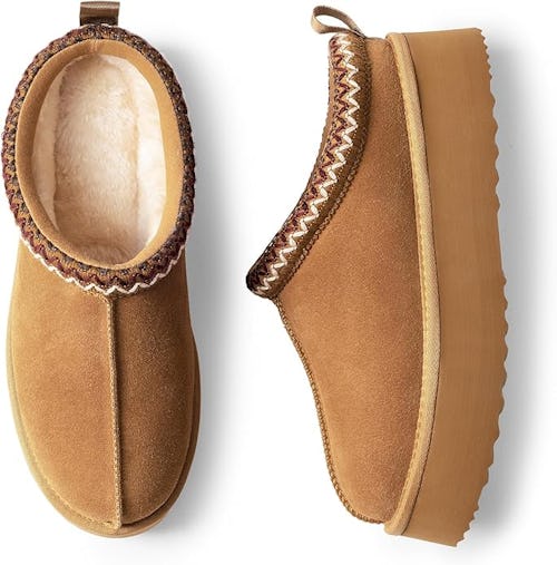 Crafted from genuine suede and lined with soft faux fur, these platform slippers bring a luxe feel to everyday lounging. The platform sole and stitched detailing channel the look of pricier styles without requiring a splurge.