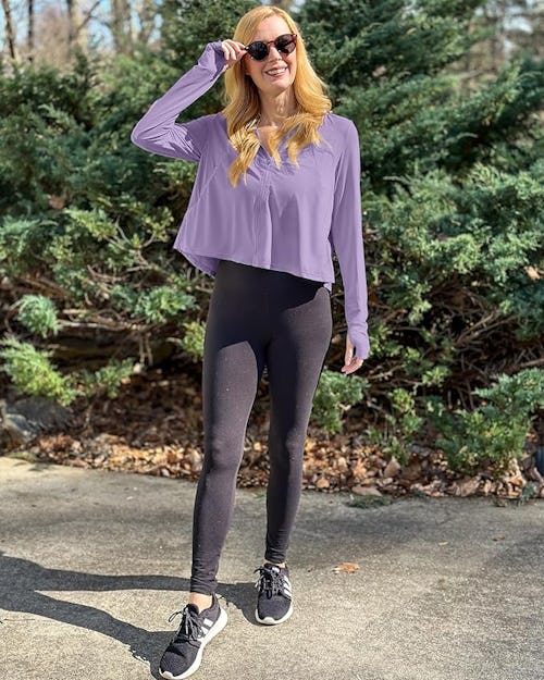 With UPF 50+ protection, this long-sleeve hoodie comes in handy for outdoor days. It’s crafted from an airy, moisture-wicking fabric to help keep you dry and comfortable; and with that swingy cropped fit, the full-zip silhouette is also chic AF.