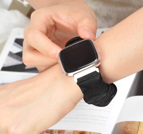 Designed to look and feel like a soft scrunchie, this smart watch band feels oh-so-gentle on your wrist; it’d be great during workouts, sleep, or a potential hospital stay. The soft, silicone-free material makes it a safe option for sensitive skin, and the stretchy elastic slips on and off easily without pinching or digging.