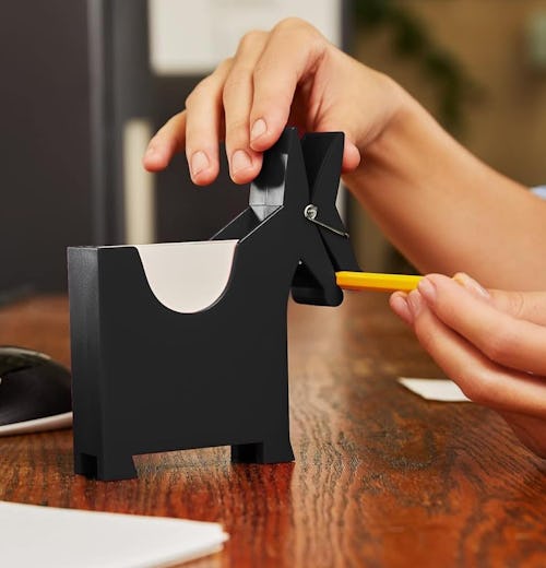Add this playful memo holder to your desk, and notes will turn into something you actually notice. Shaped like a donkey, it features a spring-loaded, clothespin-style mouth that securely holds pens, memos, and to-do lists at eye level. Its body also doubles as vertical storage for sticky notes, combining multiple desk functions into a single footprint. Sure, it’s silly, but it’ll keep you better organized throughout the day.