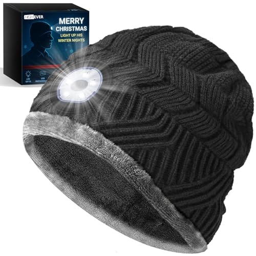 HIGHEVER LED Beanie Hat with Light: Christmas Stocking Stuffers for Men Adult Winter Gift Dark Black