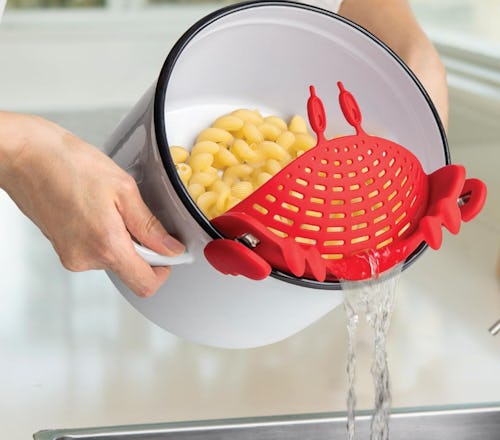 A Crab-Shaped Colander That Clips Onto Your Pot For Fast, Single-Handed Draining