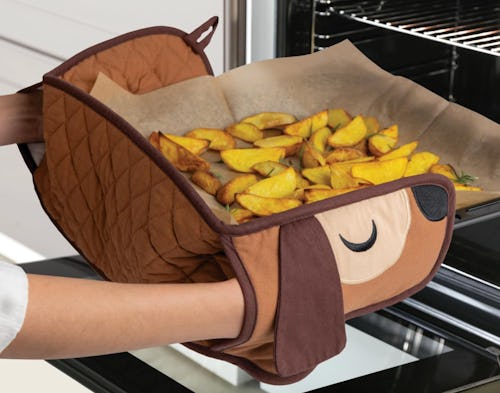 This stretched-out dachshund may look silly dangling from your oven door, but it’ll come in handy whenever the timer goes off. The connected design provides coverage for both hands, replacing the need for two separate mitts. It’s made from heat-resistant materials and designed to withstand temperatures up to 482 degrees, making it suitable for handling hot pans, baking trays, and cookware.