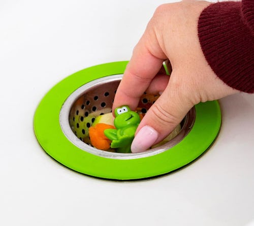 Instead of fishing soggy food bits out of the sink, why not let this cheerful little frog handle the dirty work? Made from stainless steel and durable ABS plastic, this sink strainer fits most standard drains, resisting rust and holding up to daily use. Water flows freely through the strainer, while debris are captured to help prevent clogged pipes. To clean it, simply pick up the frog, empty the strainer, and return it to its place.