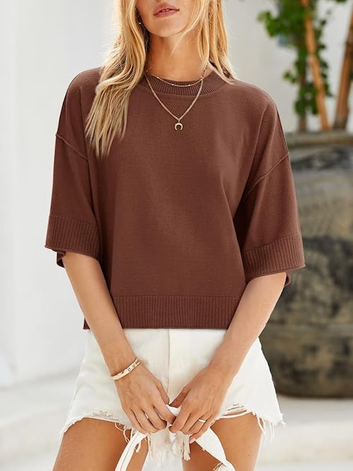 Amazon -Hundreds of shoppers adore this perfectly cropped sweater for its comfort and laid-back style. It features a roomy, oversized fit combined with trendy drop shoulders. Dress it up or down with denim jeans and front-pleat pants, or go all in and cozy with a pair of sweats. It's also possible to throw it over a long-sleeve shirt for extra coverage and unexpected layering.