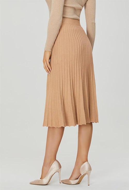 This pleated skirt will add texture and movement to any look. It features a classic A-line silhoutte and an elastic waistband. It’s crafted from a knit fabric, and reviewers have noted that it offers a comfortable weight that can be worn in any season.