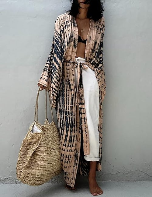 This long and loose cover-up is ideal both on and off the beach. With its sophisticated, oversized bell sleeves, you’ll be tempted to wear this over and over again, whether it’s with a swimsuit or over a slip dress. Don’t believe me? One savvy shopper demonstrates just how versatile this is, wearing it as a dress all by itself, with different styled necklines. Genius!