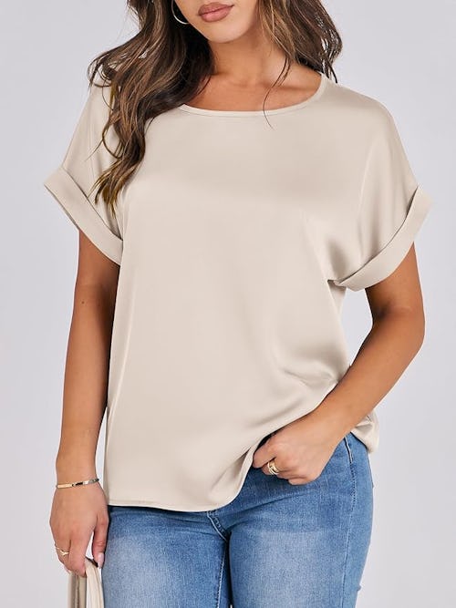 A Short-Sleeved Satin Blouse That Earns 5 Stars For Comfort