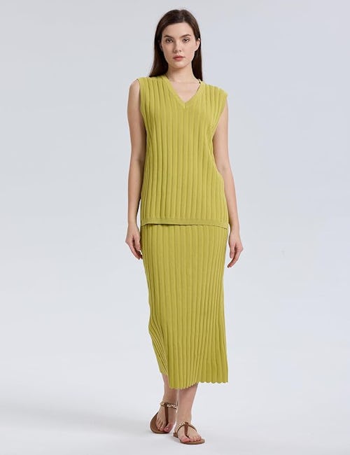A 2-Piece Sweater Vest & Skirt Set For Warm-Weather Coziness