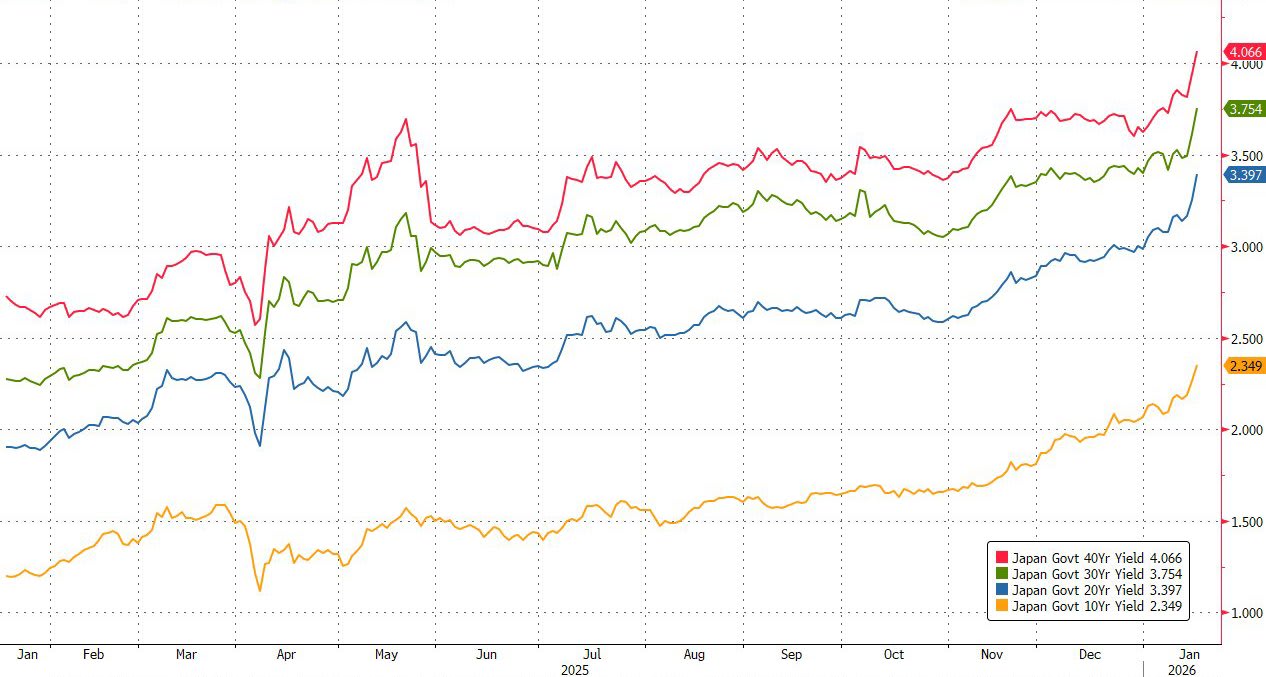 “It’s the Takaichi trade in motion. The combination of rising JGB yields in Japan and concerns over renewed US-European tariffs could lead to further rises in global bond yields, ” Mansoor Mohi-Uddin, chief macro strategist at Bank of Singapore told Bloomberg overnight.
