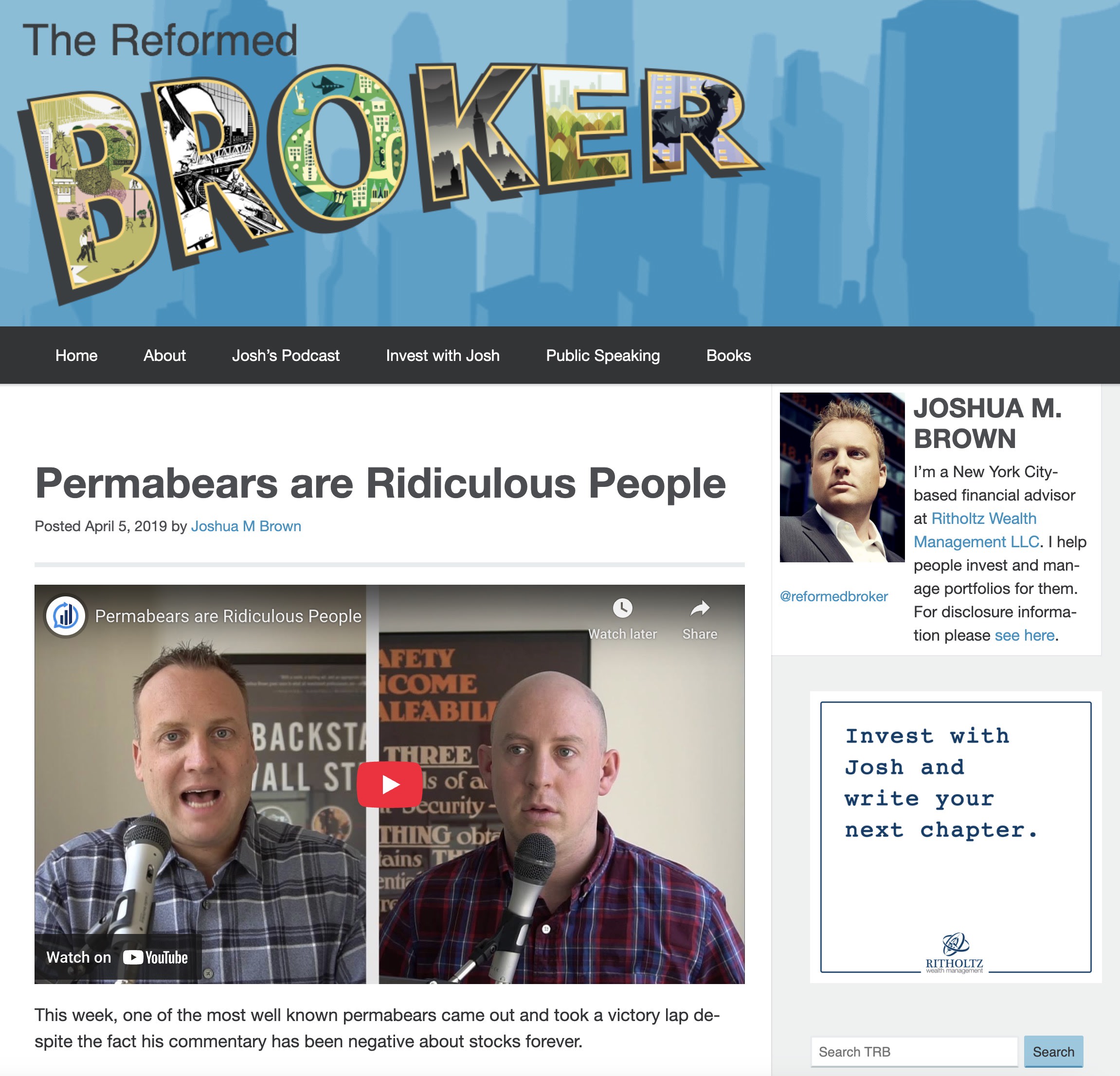 In the same vein, CNBC staple Josh Brown made a post in 2019 stating that “Permabears Are Ridiculous People” for celebrating small drawdowns in an otherwise rising nominal price stock market. I agree with Brown’s point on markets, but not that permabears are ridiculous — in fact, I find them to be the only people who see the market clearly.