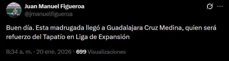 El mercado de invierno en el futbol mexicano permanece abierto hasta el próximo 9 de febrero, motivo por el cual varios clubes aún se mantienen activos en busca de refuerzos. Aunque distintos reportes señalan que Chivas ya cerró su plantel y los jugadores registrados serán con los que dispute el Clausura 2026, el que todavía tenía un movimiento pendiente era el Tapatío, refuerzo que ya se encuentra en la ciudad de Guadalajara.