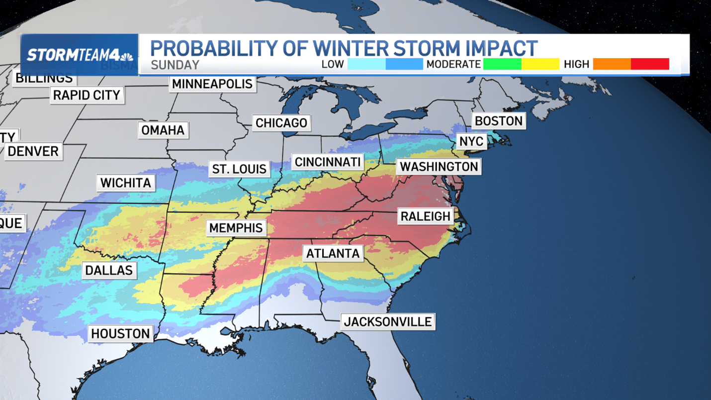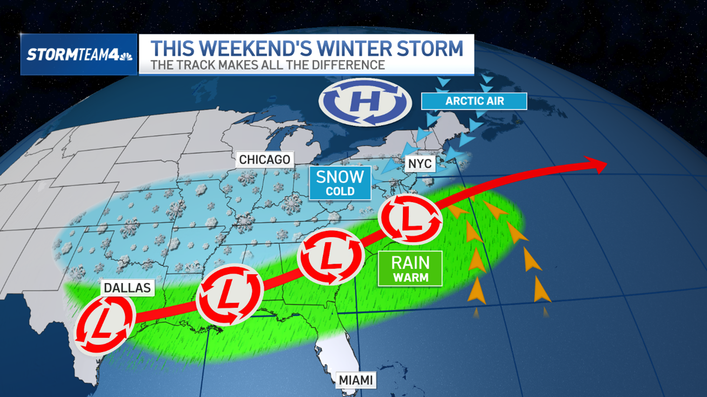 - A whopper of a winter storm is set to impact a large chunk of the U.S. – from Texas to the East Coast – this weekend. It’s too early to predict how much snow may get locally. It all depends on track.