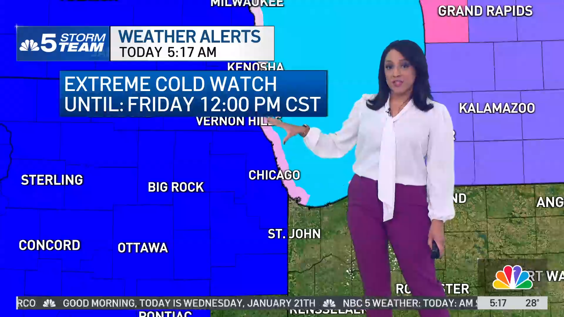 Late Thursday night through 12 p.m. Friday, an extreme cold watch will go into effect for all of northeast Illinois. That watch could be upgraded to a warning, Roman said, as air temperatures are expected to be as cold as -10 degrees Friday morning, and wind chills down of -35.