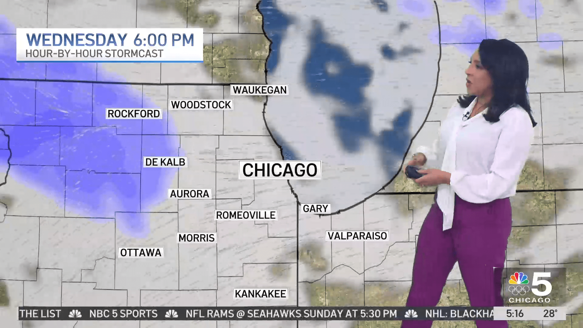 The system comes as a winter weather advisory issued for Kenosha County in Wisconsin continues through 6 a.m., with two to four inches of snow possible. About 5:15 a.m., Live Doppler 5 radar showed snow across Lake, McHenry and DeKalb Counties, as well as counties to the southeast and into northwest Indiana.