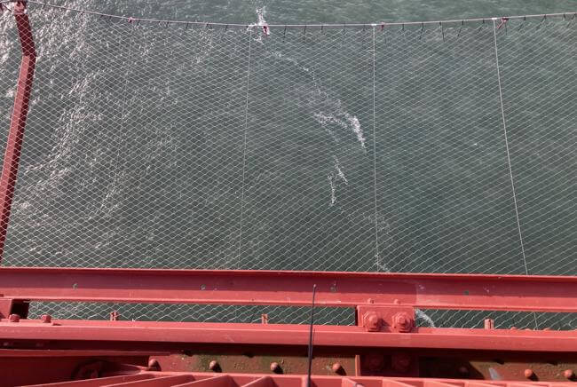 We should clarify that when we’re talking about “nets” on the Golden Gate Bridge, the project in question isn’t some kind of circus netting or network of ropes. The suicide deterrent net is made from 3.5 miles of hard, unyielding, marine-grade stainless steel, installed 20 feet below the pedestrian catwalks and extending 20 feet over the water. They’re designed to hurt, and potentially to injure, but to be less than lethal. Why not something kinder and gentler? Well, it’s because even to those who are seeking death, the threat of pain can be a surprisingly effective deterrent. The Golden Gate Bridge system was modeled after similar steel netting installed at Bern, Switzerland’s Münsterplattform terrace, which had its own issues as a suicide destination. After the netting was installed in 1998, jumps from the terrace effectively stopped, as the surety of death had been replaced by the threat of pain.