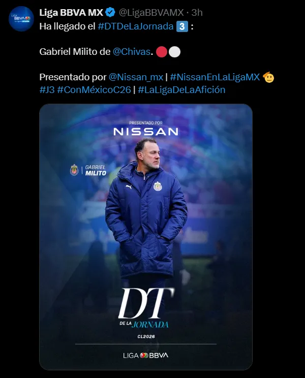 La Liga MX decidió premiar al estratega argentino al nombrarlo Mejor Director Técnico de la Jornada 3 del Clausura 2026, no solo por el triunfo ante Querétaro, sino por el buen futbol que mostró el Rebaño Sagrado. Chivas ofreció un partido vistoso, dominante y bien trabajado, controlando el encuentro prácticamente de principio a fin.