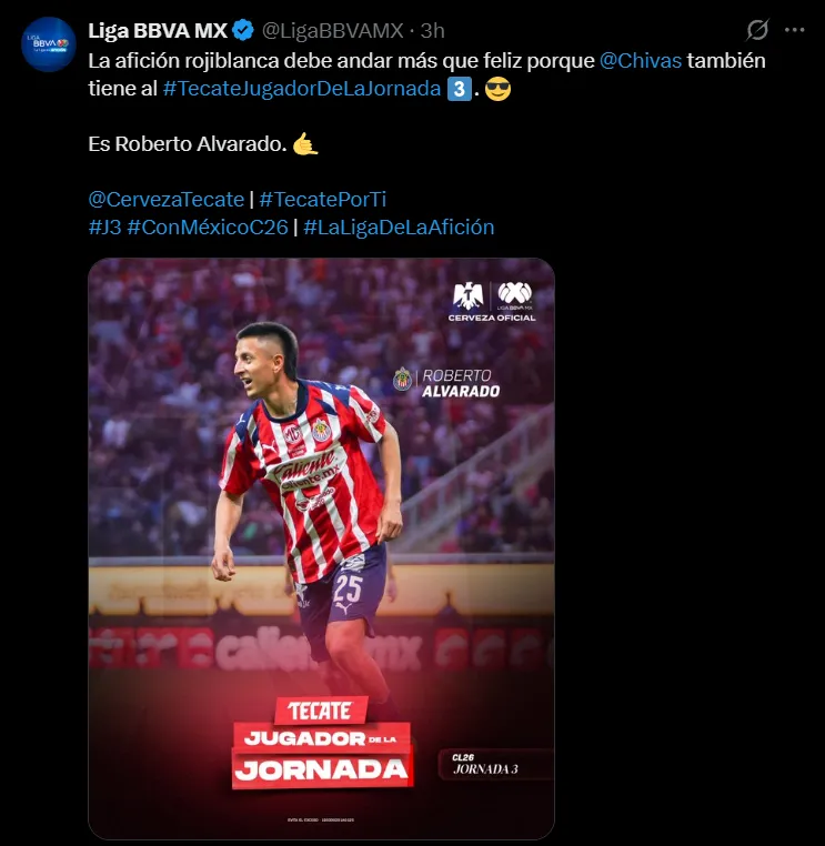 Este reconocimiento llega en un momento inmejorable para Alvarado, ya que durante la pretemporada y los primeros partidos del Clausura 2026 parecía lejos de su ritmo ideal. Sin embargo, su rendimiento reciente y los premios otorgados por la propia Liga MX y otras plataformas refuerzan la idea de que está siendo una pieza clave en el gran momento que vive Chivas.