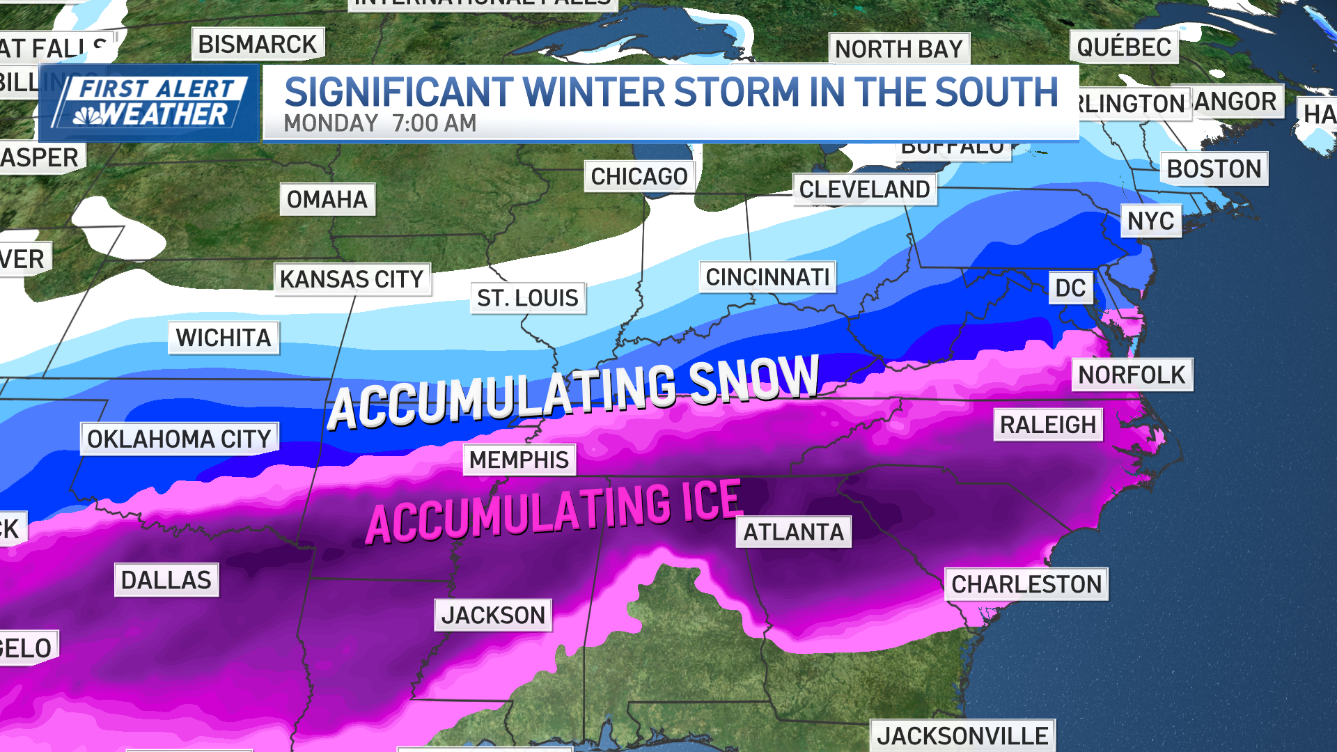 A major ice storm is setting up across the Deep South, from Texas through the southeastern U.S. There’s still uncertainty at exactly where the changeover to rain will be near the Gulf Coast, plus who will see ice versus snow across the Midwest and Ohio River Valley.