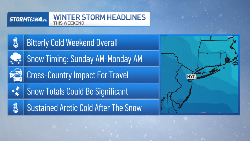 Before the snow arrives, expect another Arctic blast heading into the weekend. After a warmup on Thursday, the bitter cold moves back into the tri-state Friday night, setting the stage for the big snow potential.