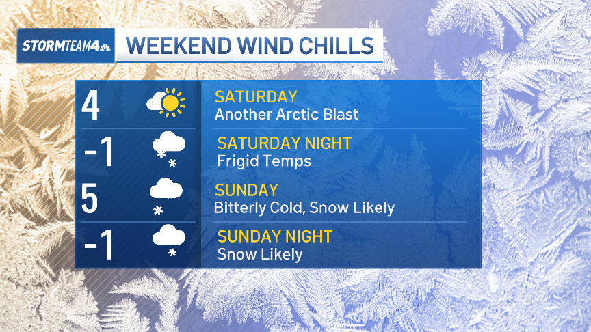 Wind chills in the single digits can be expected Saturday and Sunday, and it could even feel below zero each night.