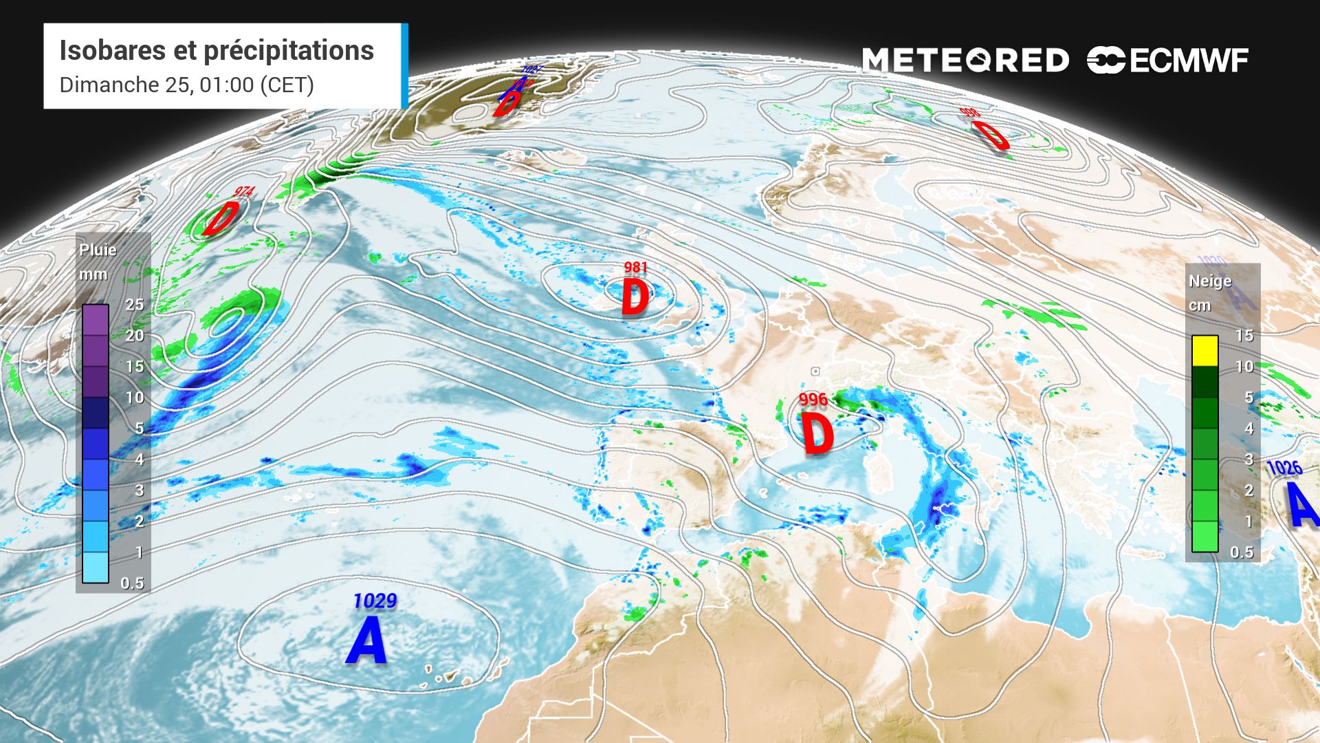 Les conditions météo sont toujours aussi dégradées en direction de la France. Trois départements sont toujours placés en vigilance orange crues dans le nord-ouest du pays : le Finistère, le Morbihan et l’Ille-et-Vilaine. De nouvelles pluies sont attendues au cours des 24 prochaines heures, ce qui va clairement freiner la décrue.