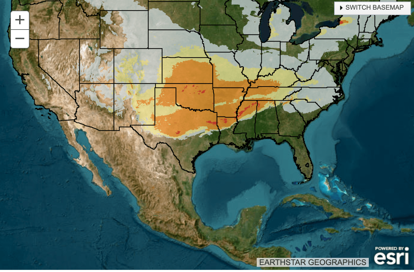 Se espera que la tormenta se extienda 2,000 millas por todo el país, desde las llanuras del sur hasta el noreste. Todas las principales áreas metropolitanas, desde Dallas hasta Nueva York, se encuentran en la trayectoria de la tormenta.