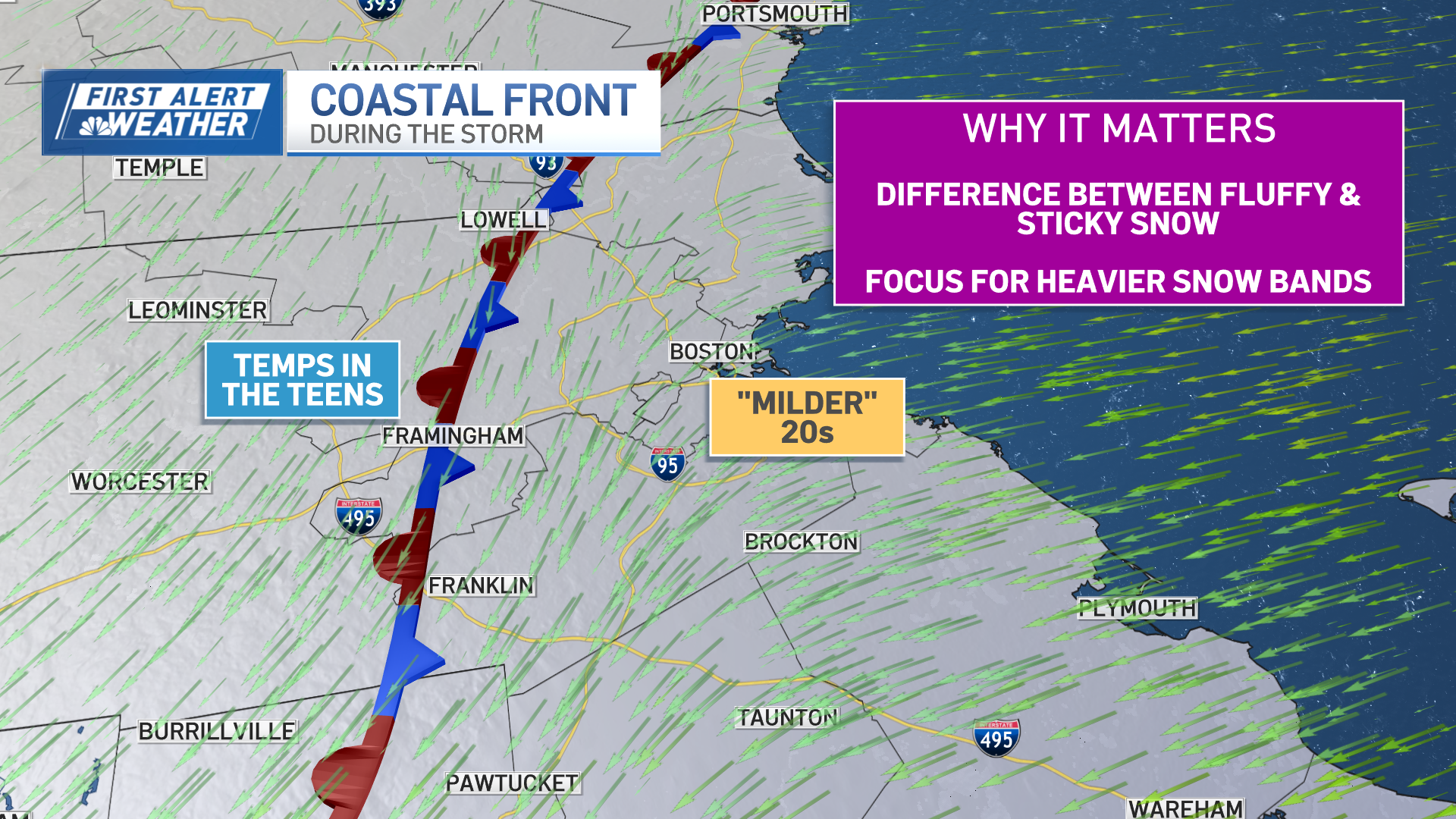 While that’s ongoing, a milder flow of air will come in off the ocean and begin to lift our temperatures from the teens to the 20s – perhaps even near 30 at the water’s edge. Why does this matter?