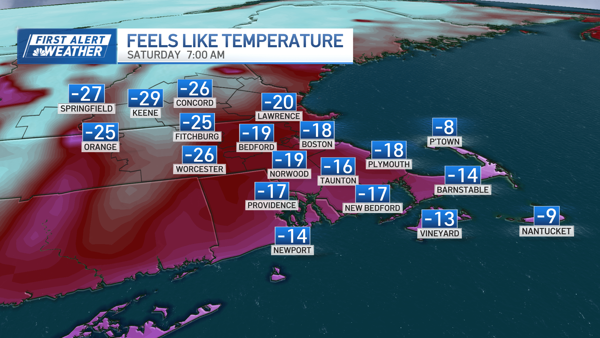 Frigid wind chills set in after dark, plummeting to 15 to 25 below by Saturday morning.
