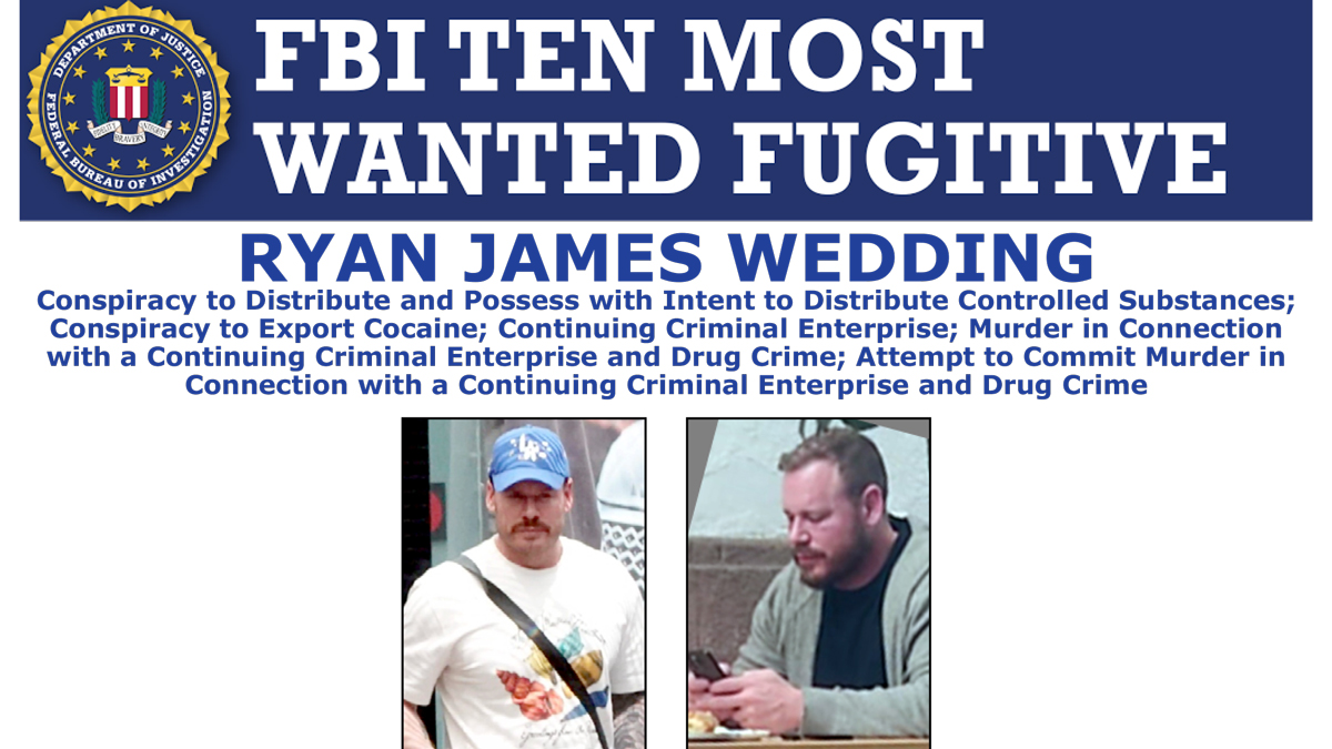 En marzo, Wedding fue incluido en la lista de los diez fugitivos más buscados del FBI y se ofrecía una recompensa de $15 millones por información que condujera a su arresto y/o procesamiento.
