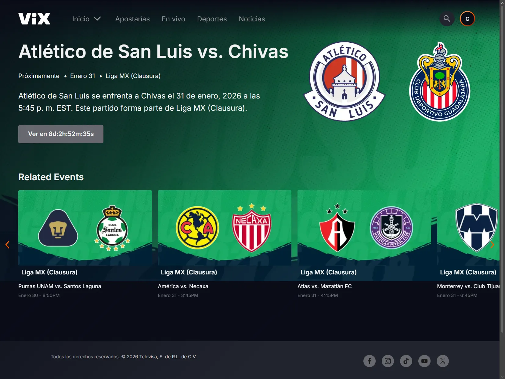 A partir de la Jornada 4 ante Chivas, los partidos del Atlético San Luis también serán transmitidos por TUDN, facilitando enormemente el acceso para los aficionados rojiblancos. De hecho, en la plataforma ViX ya aparece programado el duelo entre los potosinos y el Guadalajara, lo que confirma oficialmente este cambio de transmisión.