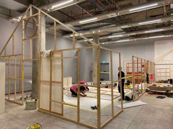 Nous avons essayé de recycler tout le matériel de l’exposition en faisant don à d’autres entreprises et institutions. À un moment donné, nous avons cru avoir réussi à créer une exposition sans générer de déchets. Mais une institution s’est désistée à la dernière minute. Nous avons donc dû louer une benne et nous débarrasser rapidement de tonnes de matériaux avant le début de la construction de l’exposition suivante. Ces méthodes de partage sont fragiles, et nous avons réalisé que toutes les parties devaient prendre