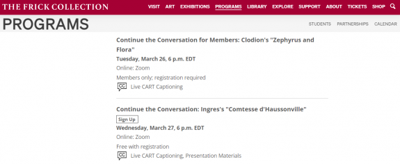Le département éducatif et la bibliothèque sur l’art de la Frick proposeront une variété de programmes en ligne durant la période de fermeture de l’institution.