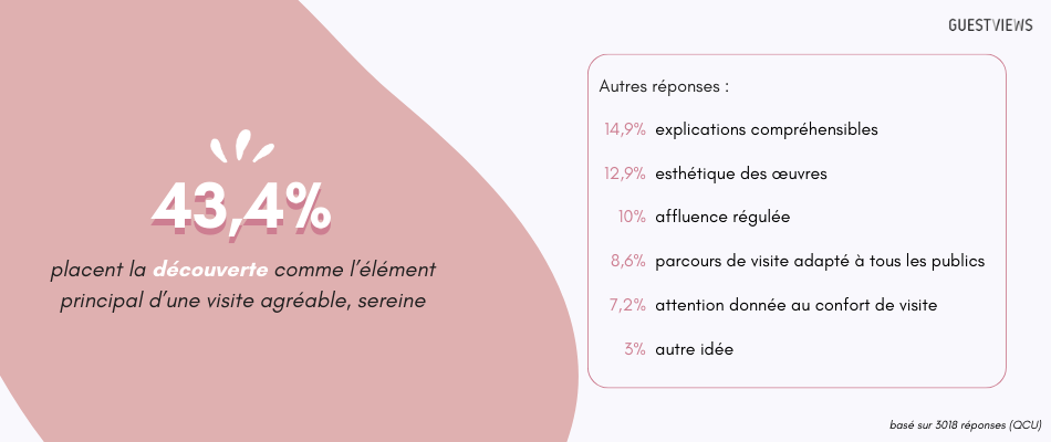 Pour le reste des participants, ils accordent plus d’importance au confort général et à l’inclusivité : 10% d’entre eux sont plus sensibles à une affluence régulée au sein du lieu, 8,6% à un parcours de visite adapté à tous les publics, et 7,2% à l’attention générale donnée au confort de visite.