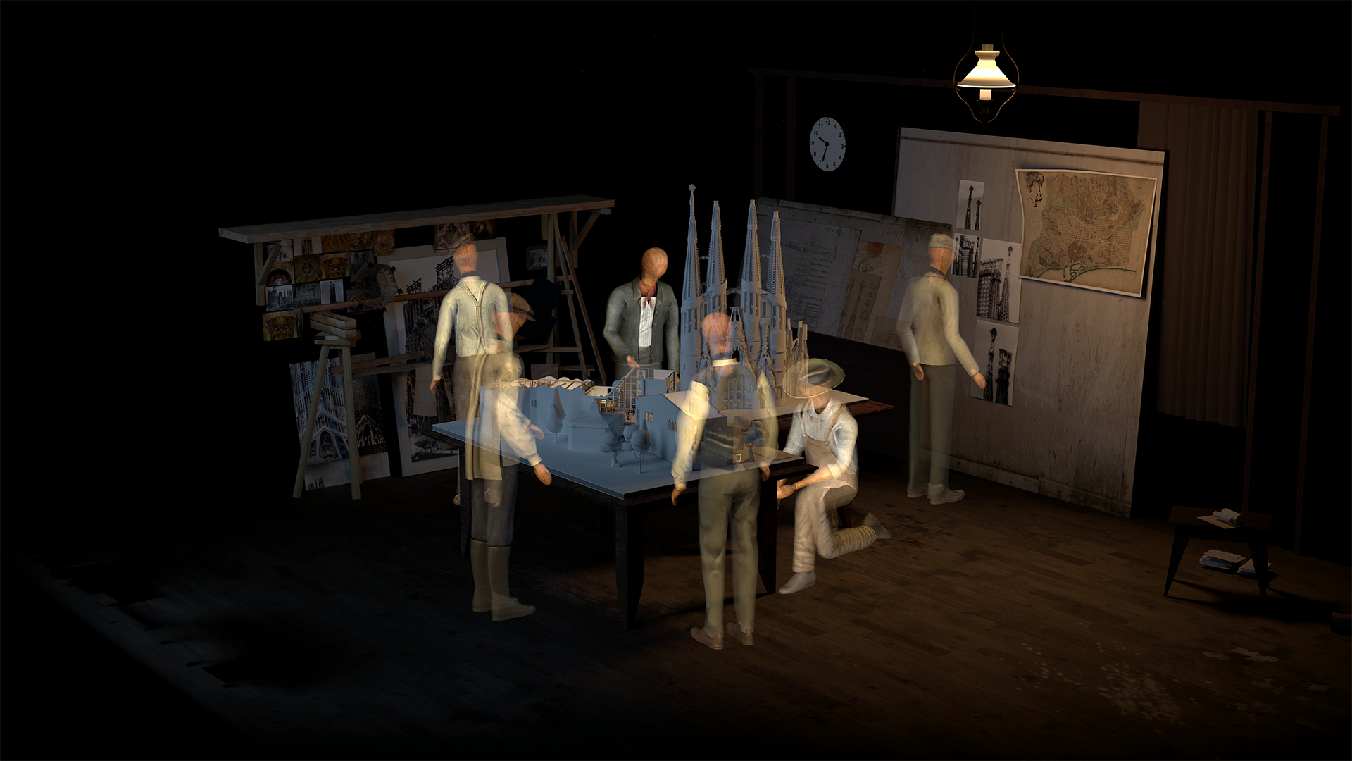 L’atelier de Gaudi ayant été intégralement détruit dans un incendie en 1936, la création de cette expérience a donc débuté par une plongée dans les archives, à la recherche des rares photos existantes.