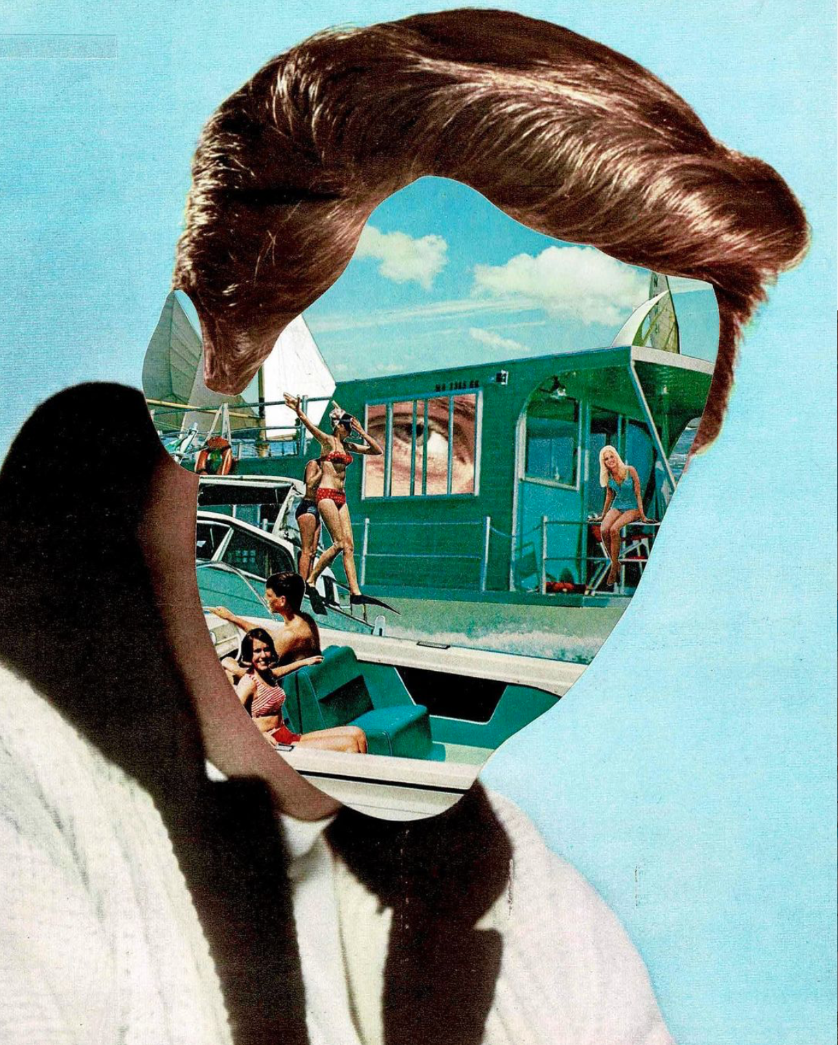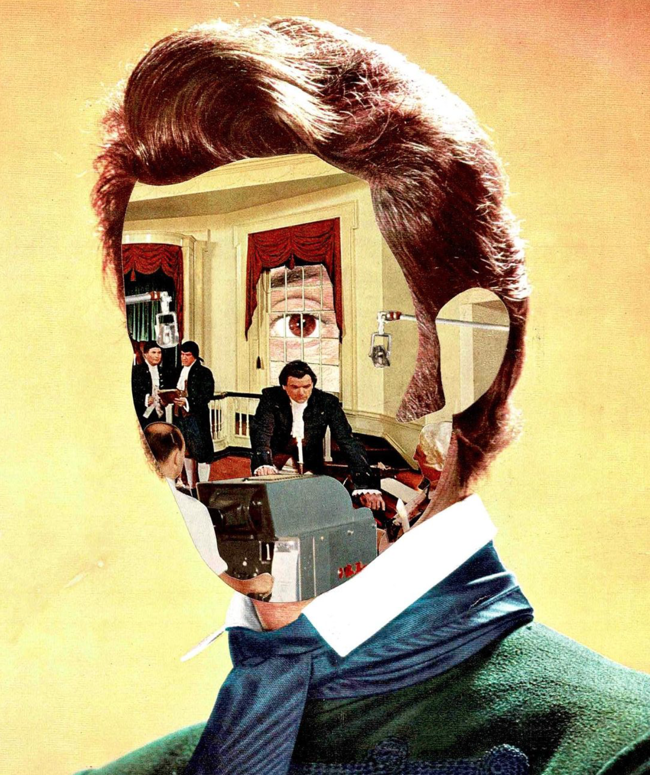 S’il a consacré la plus grande partie de sa carrière à peindre, Shane Wheatcroft s’est spécialisé dans le collage et la sérigraphie durant ces dernières années. Basé à Kent, dans le Sud-Est de l’Angleterre, ce dernier collecte les images utilisées dans ses œuvres dans des magazines vintage, des vieux livres, des timbres, des pièces de monnaie et parmi tous les morceaux intéressants de papier éphémères qu’il peut trouver. Les portraits de l’artiste sont comme une fenêtre ouverte sur la psychologie des sujets représentés en permettant au spectateur de lire à travers eux comme dans un livre ouvert. Ici, si un œil est en général laissé à sa place, le reste du visage est constitué d’éléments inhabituels…