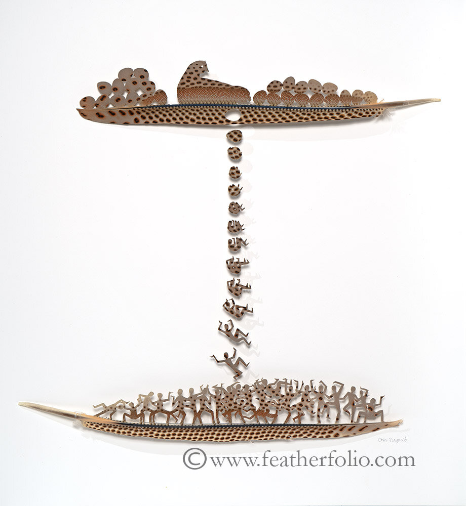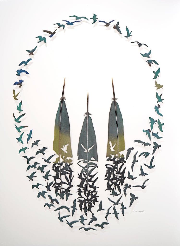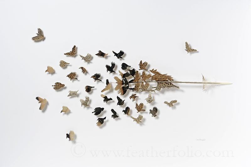 Certains les voient comme des symboles ou des signes qui leur sont adressés : les plumes ont toujours eu quelque chose d’attrayant. L’artiste Chris Mayard travaille avec ces dernières depuis qu’il a douze ans. Selon lui, « Les plumes représentent le summum de la nature : l’intersection de la fonction et de la beauté. Elles rendent le vol possible, isolent de l’eau, du soleil et du vent, et leurs couleurs et motifs les aident à se cacher et à attirer les partenaires. Chaque plume est un petit morceau de perfection. Lorsque les oiseaux perdent ou rejettent leurs plumes chaque année, il les recycle dans son art ».