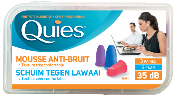 Quies® favorise le sommeil dessportifs en leur mettant à disposition des protections auditives en moussegarantissant ainsi un repos optimal. Les mousses anti-bruit permettentd’atténuer les bruits indésirables de 35 dB sans se couper totalement de son environnement.