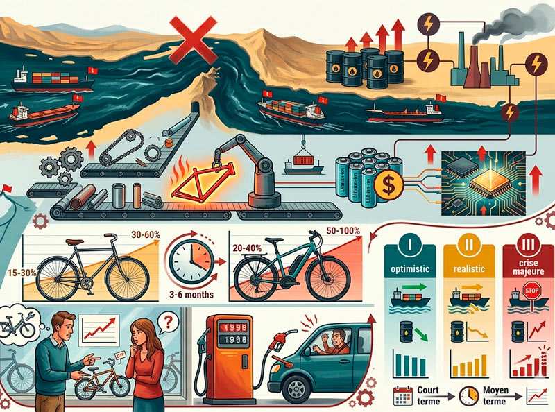 Le secteur du cycle arrive dans cette tempête dans un état déjà fragilise. Depuis 2022, le marché du vélo traverse une crise profonde, très différente de celle qui s’annonce. La différence est fondamentale : la crise 2022–2025 était une crise de la demande, avec trop de stock et pas assez d’acheteurs. La crise Ormuz est une crise de l’offre, avec des coûts de production et de logistique qui pourraient fortement augmenter.