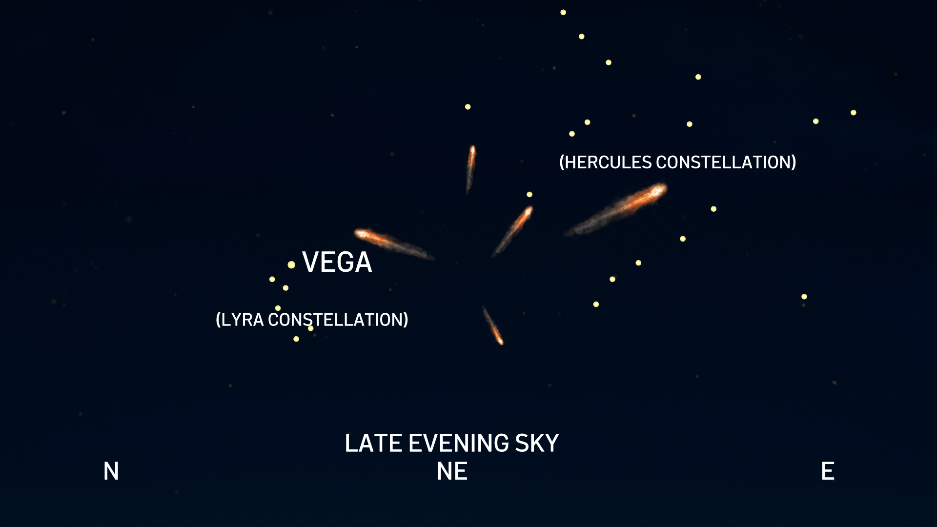 The Lyrids will appear to radiate from near the Lyra constellation, which contains the bright star Vega. Look above the northeastern horizon after about 10:30 p.m. CDT.